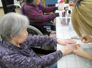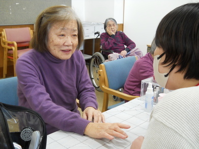 高篠 面会でご利用者がネイルを見せることがあり、ご家族が「きれいにしてくれてありがとう」ととっても喜ばれていました。SNSで写真も上げていて、日ごろ面会に来られないご家族にも喜ばれています。一時期、男性ご利用者の参加もありました。また、サロンのポスターを施設内に掲示していますが、施設見学に来た方が「こんなこともやっているんですね」と関心を持つこともあると相談員から聞いています。