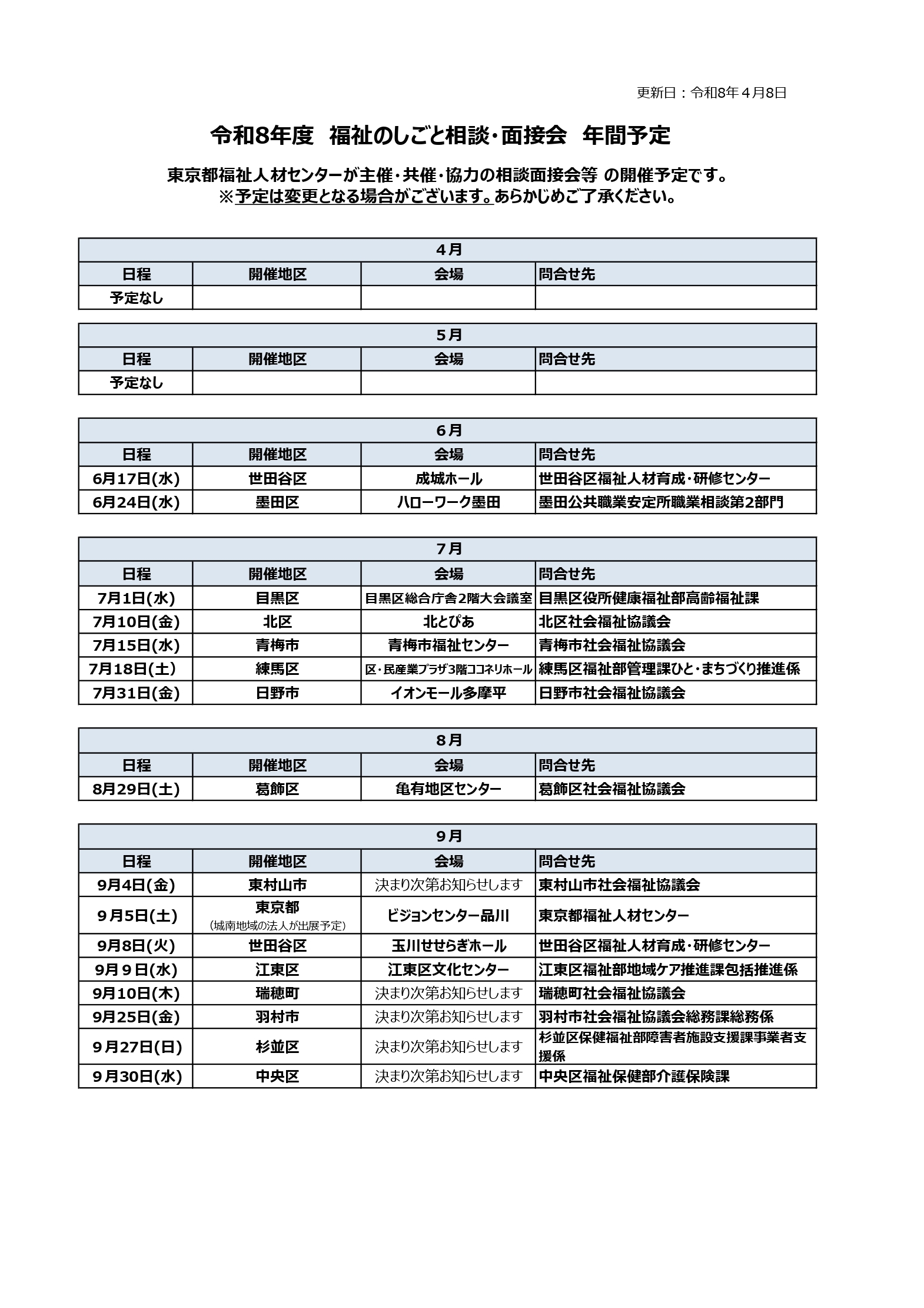| 開催地域 | 開催日程 | チラシ | 求人票等 |