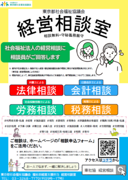 • 東京都内の社会福祉法人・福祉施設の経営・運営に関する相談を受けています。